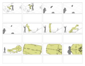 Storyboard of the opening scene for an original project featuring action sequences.